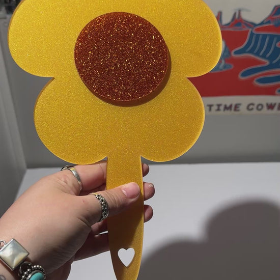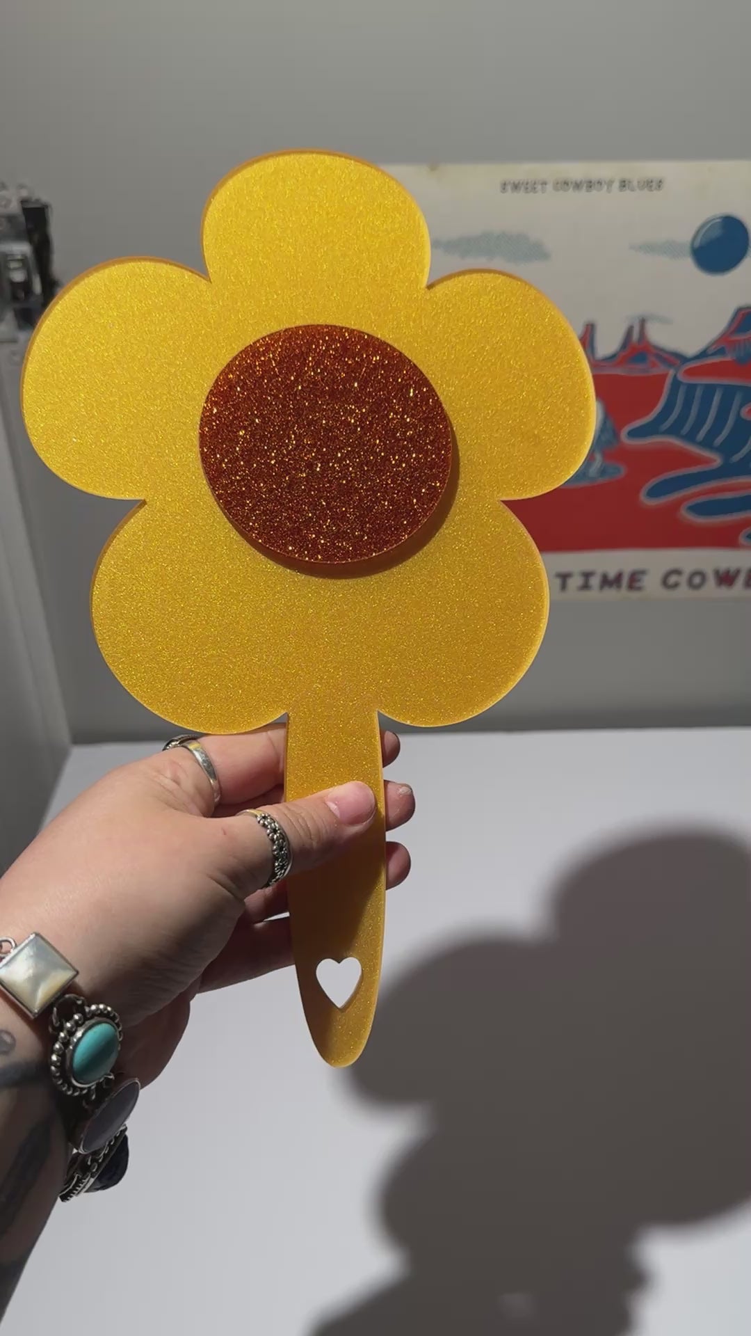 ✨ As if! This gold shimmer flower mirror with an orange center is total Cher Horowitz energy. Perfect for checking your outfit before stepping out or adding some glam to your vanity.